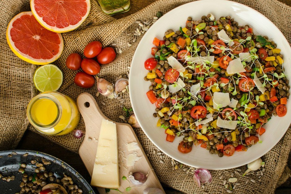Patlıcanlı Yeşil Mercimek Salatası