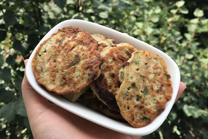 2. Üzerine baharatlar ve rendeleyip suyunu sıktığımız kabak, yeşil soğan, maydanoz ve sarımsak eklenir.