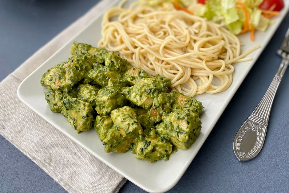 Evde dışarıda yediğinizi aratmayacak oldukça lezzetli bir tavuk yapıyoruz. Ispanak, krema ve pesto sosun karışımıyla hazırladığımız sos mühürlenerek pişirilen tavuk etleriyle buluşuyor. Ortaya mükemmel bir lezzet çıkıyor. Favori menünüz olacak bu tarifi denemek için sizi mutfağa alalım. Şimdiden ellerinize sağlık.