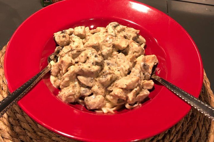 Kremalı Mantarlı Makarna ve Kekikli Tavuk