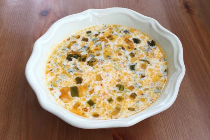 - Zeytinyağını bir sos tenceresinde ısıtın. Pul biber toz biber ve ince kıyılmış taze soğanları ekleyip soğanlar hafif diriliğini kaybedene kadar pişirin.