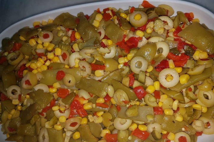 - Derin bir karıştırma kabında fasulye, doğranmış malzemeler, mısır, zeytinyağı ve limon suyu iyice karıştırılır.