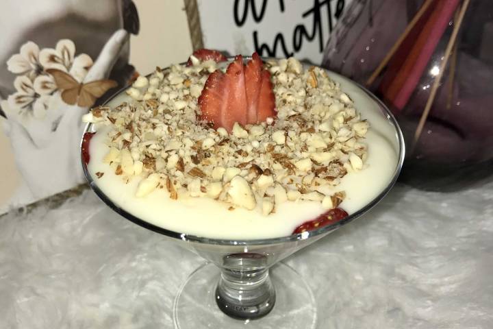 - Muhallebimiz hazır bir kenara alıp 5 dakika soğuması beklerken biz de çileklerimizi yıkıyoruz. Daha sonra ince dilimler şeklinde ya da yapacağınız tabak sayısına göre kesiyoruz.
