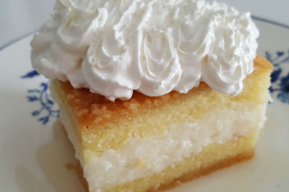 - Üzerine muhallebiyi sürün. Üst kat keki de yerleştirip kalan şerbeti üzerine dökün.